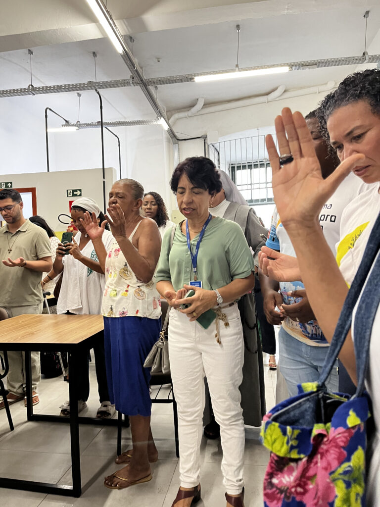A inauguração da Casa Franciscana Maria Lúcia reuniu um grande número de pessoas e lotou o espaço, com a presença de representantes de diversos órgãos públicos, instituições e organizações que atuam junto à população em situação de rua no Centro Histórico de Salvador. A participação expressiva reafirmou a importância do espaço e a necessidade de fortalecer iniciativas que promovam cuidado, proteção e garantia de direitos.