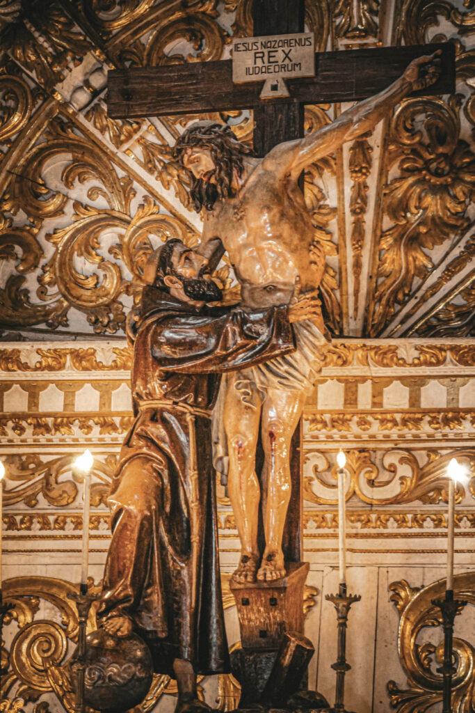- Imagem do Cristo Crucificado abraçado por São Francisco, instalada em 1930 e inspirada em Murillo.