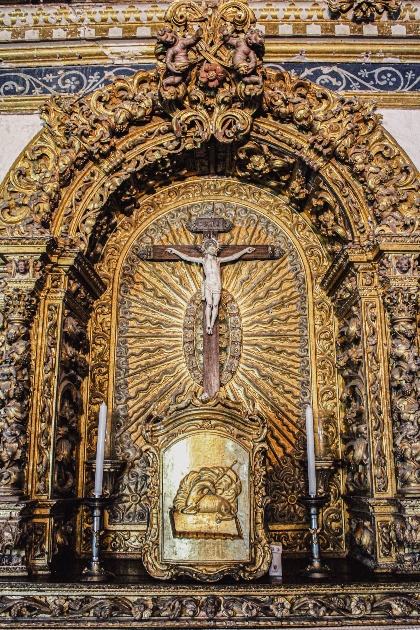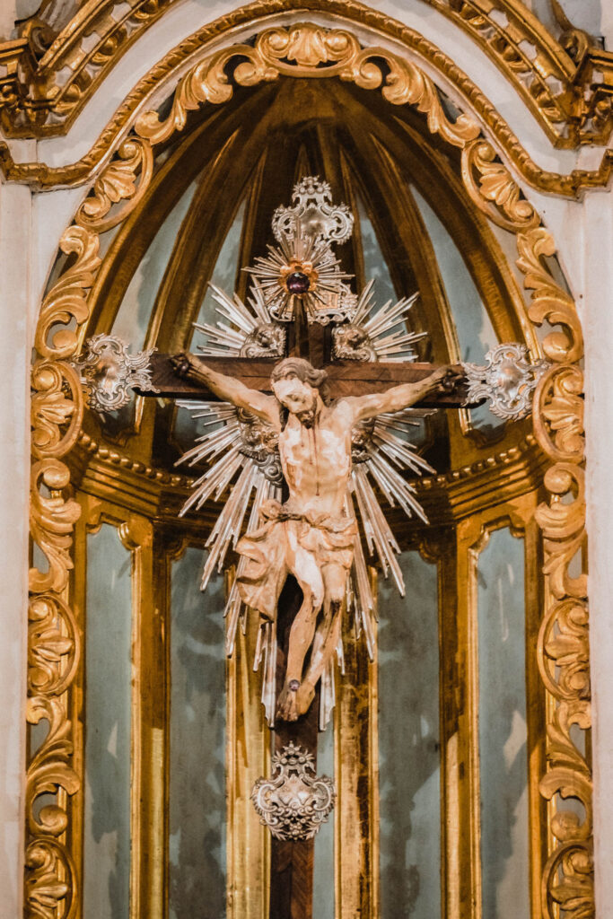 - Altar com talha dourada e Crucificado em marfim
